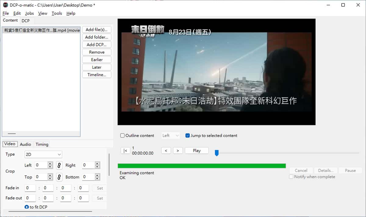 可以直接播放 DCP 檔案,確認製作結果是否正確。