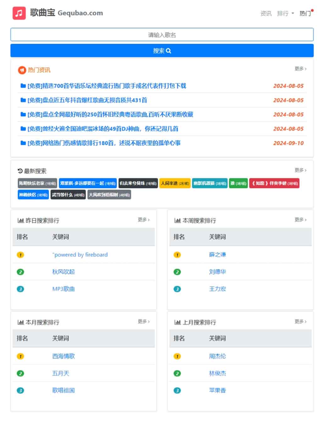 「歌曲寶」(Gequbao.com)是一個免費的歌詞搜尋與下載網站,其功能超越了「魔鏡歌詞網」。除了提供歌詞,該網站還支援直接下載或在線上收聽搜尋到的歌曲。使用者只需輸入歌曲或歌手名稱作為關鍵字,即可輕鬆找到所需歌曲。不僅可以在線上收聽,還能下載歌曲及帶有時間戳記的 LRC 格式歌詞(可用記事本開啟)。「歌曲寶」的資源涵蓋範圍廣泛,除了中、港、台音樂,還包括歐美、日、韓、越南等多國歌曲。此外,網站還提供每日、每周和每月的搜尋排行榜,並推薦熱門歌曲,堪稱另一個「魔鏡歌詞網」,為用戶帶來更豐富的音樂體驗。