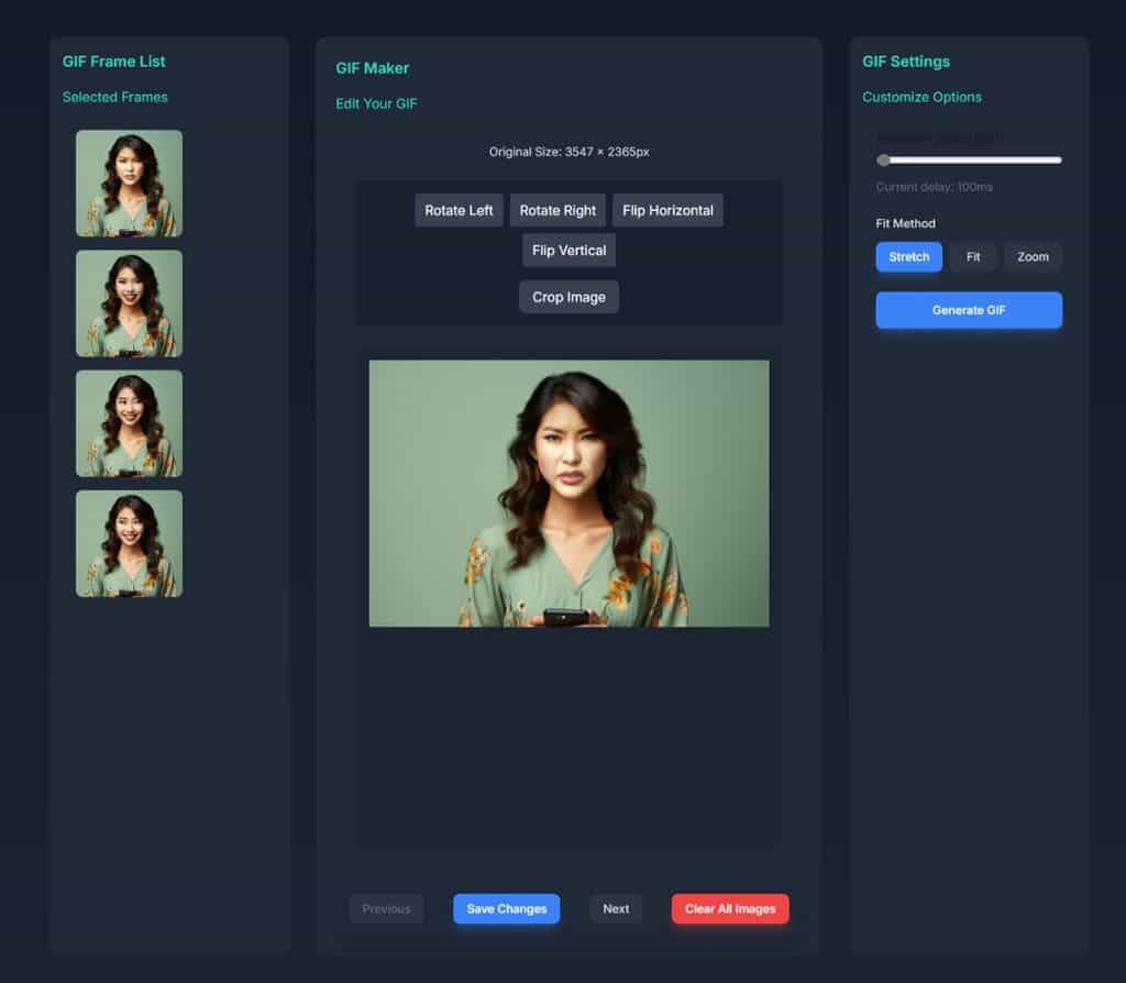 首頁線上工具影像繪圖 GIF Maker 免費線上 GIF 製作工具,輕鬆上傳多張照片快速生成動畫 GIF Maker 是一款免費且方便的線上工具,讓使用者能夠輕鬆上傳多張照片並快速製作出 GIF 動畫圖檔。無需下載或安裝任何軟體,只需透過瀏覽器即可完成所有操作。使用者可以自由調整動畫的播放速度與照片順序,確保製作出的 GIF 完全符合需求。此外,當處理不同尺寸的圖片時,還可選擇 Stretch、Fit 或 Zoom 三種呈現方式;若選擇 Fit,還能設定 Background Color,填充背景空白區域,使 GIF 顯示效果更完美。GIF Maker 無須註冊即可使用,成品也不會有浮水印,也無使用次數限制。 🔔 不錯過任何精彩! 立即訂閱我們的 LINE 官方帳號 每次發佈新文章時,您將會第一時間收到本站文章連結通知,輕鬆掌握最新資訊! 使用 LINE 追蹤文章更新 §相關文章,還可以參閱:照片角度不滿意?AI 幫你調整!3D Camera Control 讓舊照片任意變換視角Meta AI 免費帳戶也能用 Midjourney!無限生成 AI 圖片,台灣可用Nano Banana Pro 幫你放煙火,地點、形狀由你指定Mock.Club:免費 AI Mockup 素材庫,拖曳截圖立即生成專業展示圖Adobe 官方宣布:Photoshop、Express、Acrobat 免費整合 ChatGPT,免費版也能用 無需下載軟體,自由調整播放速度與畫面呈現方式,輕鬆製作 GIF 動畫圖檔 1.進入 GIF Maker 網站,即可上傳圖片,圖片格式支援 JPG、PNG、GIF、BMP 或 TIFF,總量有 10 MB 限制。 2.圖片上傳後,左側欄會列出順序,可以使用滑鼠拖曳調整,中間欄還能對圖片進行旋轉及裁剪,右側欄則可以調整動畫速度與當碰到不同尺寸的圖片時,可選擇 Stretch、Fit 或 Zoom 三種呈現方式;若選擇 Fit,還能設定 Background Color,填充背景空白區域,使 GIF 顯示效果更完美。 3.完成調整後按下「Generate GIF」即可生成與下載。 4.成品不會有浮水印。 對於想將自己的照片或繪圖製作成 GIF 動畫的使用者來說,GIF Maker 無疑是最佳選擇。它不僅操作簡單、完全免費,還提供多種自訂選項,讓每一張 GIF 都能符合個人需求。 GIF Maker網站網址:https://gifmakerfree.com/