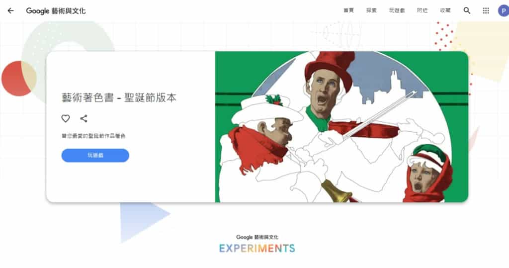 首頁線上工具影像繪圖 「Google 藝術與文化-聖誕節藝術著色書」可線上著色也可以下載列印 需要有關聖誕節的著色畫本,可以來「Google 藝術與文化」網站看看「藝術著色書 - 聖誕節版本」,該網站將原有藝術品內的主要圖案以輪廓呈現,並提供畫具,讓使用者在線上進行著色,並可以著色的過程中,隨時套用原來被移除的背景圖案,讓原本的藝術品瞬間就有不同的風格呈現。如果不想在線上著色也可以以 PNG 圖檔下載後再列印。每幅藝術品均有提供該藝術品的詳細資訊供使用者查詢與了解,讓著色起來更有成就感。 🔔 不錯過任何精彩! 立即訂閱我們的 LINE 官方帳號 每次發佈新文章時,您將會第一時間收到本站文章連結通知,輕鬆掌握最新資訊! 使用 LINE 追蹤文章更新 §相關文章,還可以參閱:照片角度不滿意?AI 幫你調整!3D Camera Control 讓舊照片任意變換視角Meta AI 免費帳戶也能用 Midjourney!無限生成 AI 圖片,台灣可用Nano Banana Pro 幫你放煙火,地點、形狀由你指定Mock.Club:免費 AI Mockup 素材庫,拖曳截圖立即生成專業展示圖Adobe 官方宣布:Photoshop、Express、Acrobat 免費整合 ChatGPT,免費版也能用 如何使用「Google 藝術與文化」藝術著色書 - 聖誕節版本? 1.「Google 藝術與文化」所提供的藝術著色書 - 聖誕節版本是在遊戲分類。 2.點擊進入藝術著色書 - 聖誕節版本後,就可以點選玩遊戲按鈕。 3.首先,點選想要著色的藝術品。 4.以聖誕老人為例,進入後,就是黑白輪廓,下方畫具可供著色,右側有下載及返回上一步驟的按鈕。 5.左側則提供圖層及該藝術品的相關訊息。 不論著色到任何階段,都可以使用下載功能將目前完成階段的畫作,下載成 PNG 圖檔。 「Google 藝術與文化」藝術著色書 - 聖誕節版本網站網址:https://artsandculture.google.com/play