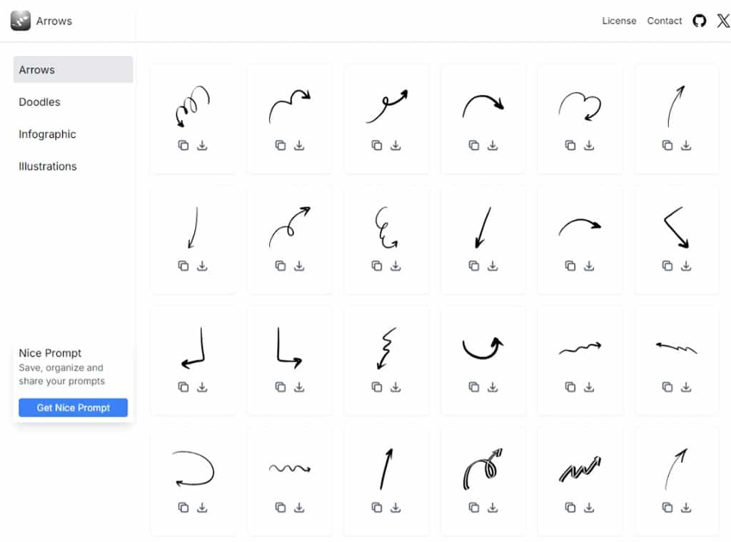 首頁免費素材圖像圖示 Handy Arrows:免費手繪箭頭與插畫圖庫,支援向量格式及 React 元件 Handy Arrows 是一個免費的插畫圖庫,包含 Arrows(箭頭)、Doodles(塗鴉)、Infographic(資訊圖表) 和 Illustrations(插圖) 這四種類型的圖像素材,其中的箭頭由插畫家 DaryaKro 手工繪製,風格獨特且富有個人特色。所有素材均提供 SVG 向量格式,方便自由調整大小,還可以即時轉換為 React 元件,方便開發者直接使用於應用程式中。Handy Arrows 採用 CC BY 4.0 授權,允許個人與商業用途,但需標示來源。 🔔 不錯過任何精彩! 立即訂閱我們的 LINE 官方帳號 每次發佈新文章時,您將會第一時間收到本站文章連結通知,輕鬆掌握最新資訊! 使用 LINE 追蹤文章更新 §相關文章,還可以參閱:精心打造的等距美學:Isocons 免費圖示資源庫,CC BY 4.0 授權Map-It:日本地圖素材的免費寶庫,從全國到市町村一網打盡PICaboo! 日系可愛免費向量圖素材庫:設計師必收的創作寶庫GAHAG:日本免費圖庫新選擇,結合アハ體驗互動遊戲的創意素材平台illust STAMPO:日式風格的免費插圖素材網站 免費手繪箭頭與插畫素材,支援向量格式與 React 元件轉換 1.進入 Handy Arrows 網站,左側欄有插畫類型可選擇,預設會在 Arrows 類型。 2.下圖是歸類在 Illustrations 類型內的部分圖檔。 3.每個圖檔的下方均有「複製」與「下載」兩個圖示按鈕,點選複製還會出現「React Comp.」 及「SVG 」 可選 ,如果點選下載則會直接下載 SVG 圖檔。 Handy Arrows 提供手繪風格的免費插畫素材,不僅設計獨特,還具備高實用性,無論是設計師還是開發者都能輕鬆上手。透過 CC BY 4.0 明確的授權方式,讓個人或商業專案都能安心使用。 Handy Arrows網站網址:https://handyarrows.com/