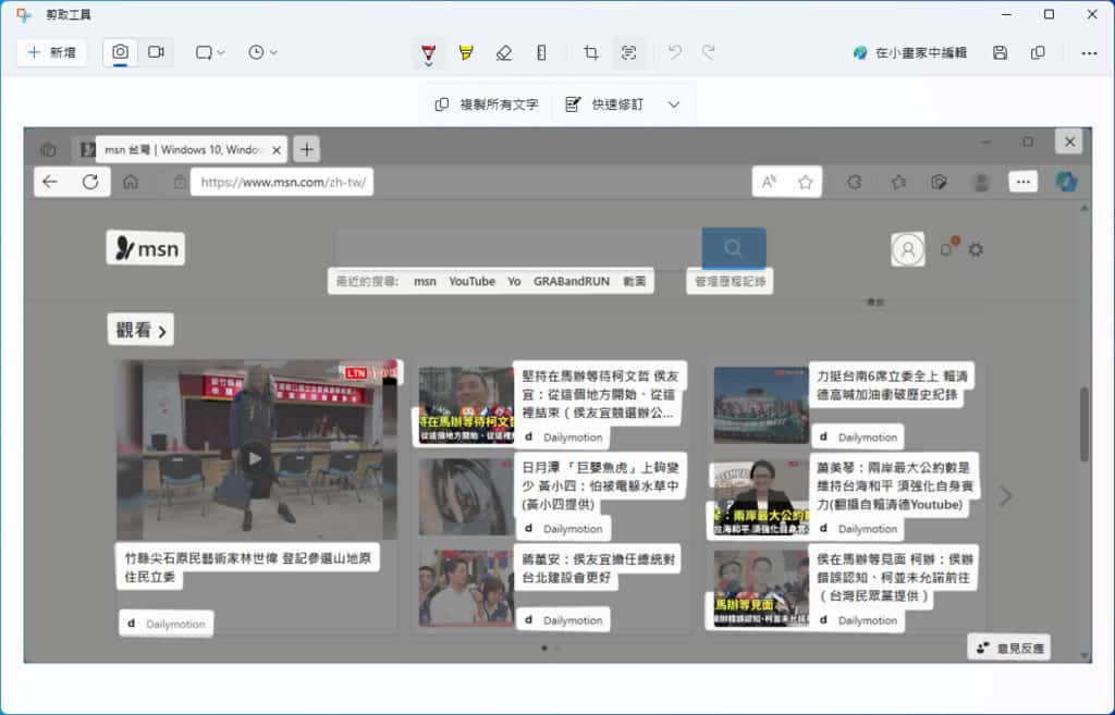 3.按下該通知後,就會直接開啟 Windows 內的「剪取工具」,而後續的操作就如前述。