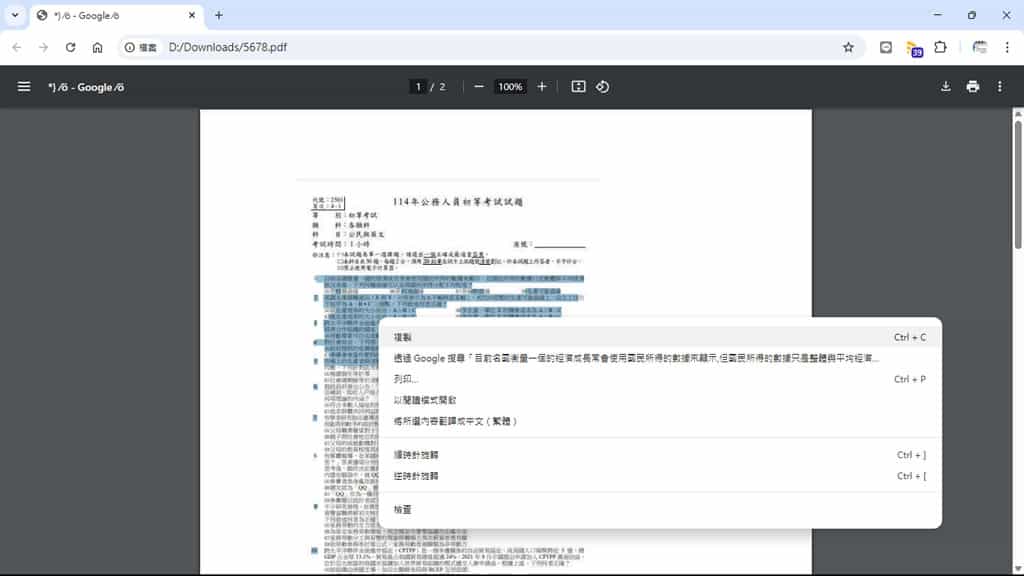 4.另存 PDF 檔,即便使用其他 PDF 閱讀軟體,例如: Edge 開啟,照樣可以選取複製及搜尋文字。