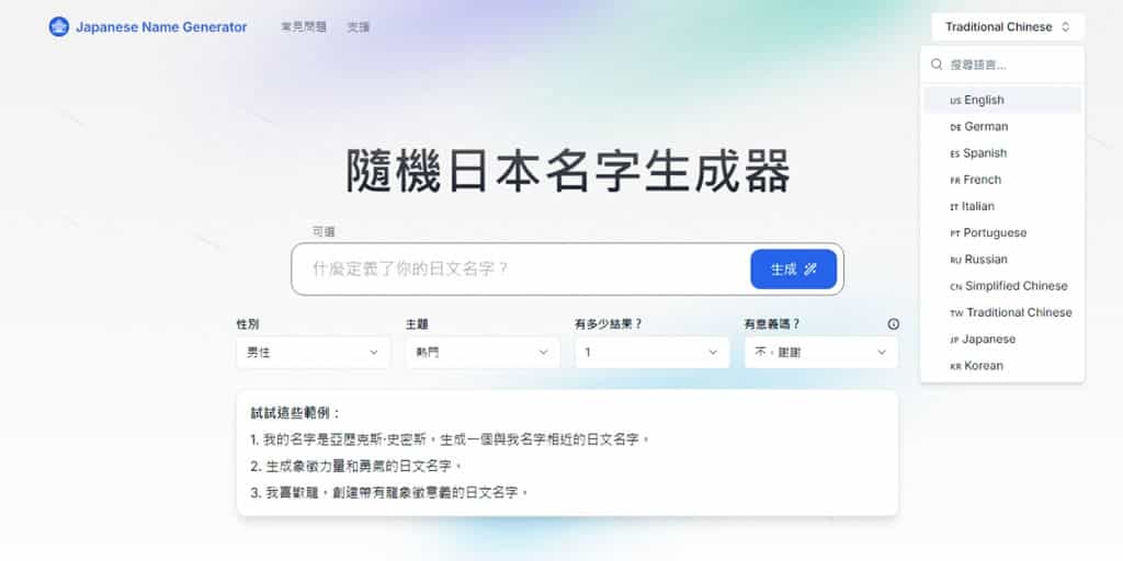 使用這個工具非常簡單。使用者只需輸入所需名字的描述,例如「我的名字是王慕可,生成一個與我名字相近的日本名字」,或是「創建一個具有龍象徵的名字」。你可以選擇性別、名字屬性,以及一次生成的名字數量,還可以選擇是否需要對名字進行解釋。更棒的是,Japanese Name Generator 完全免費且無使用限制。
