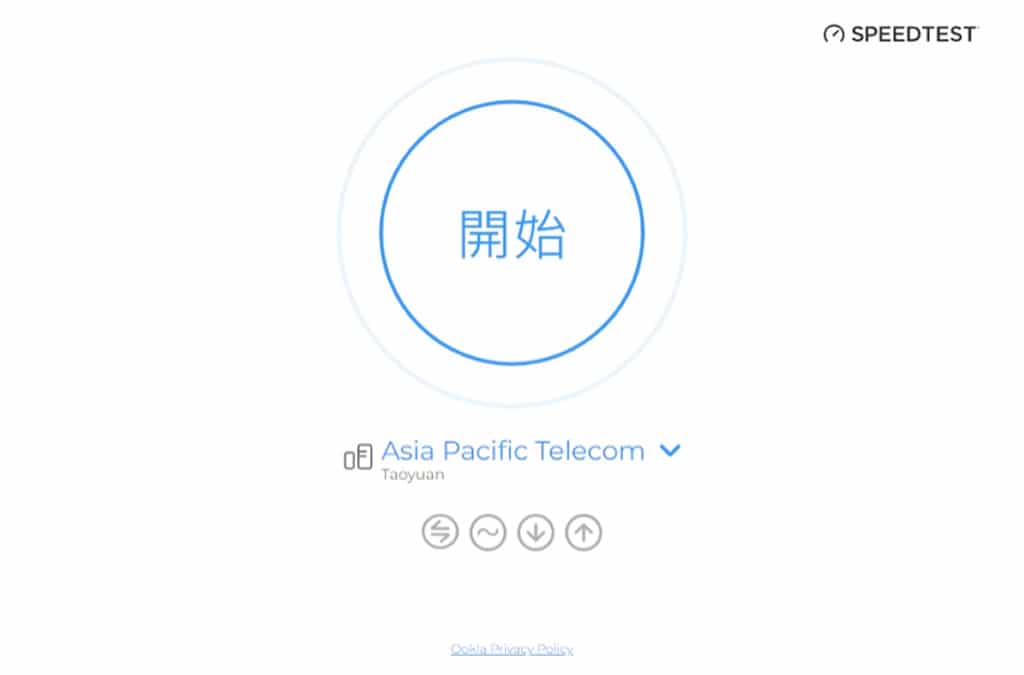 3.點擊「開始」就會進入測試頁面,測試項目包含下載速度、上傳速度、抖動(jitter)、以及延遲時間(ping)。