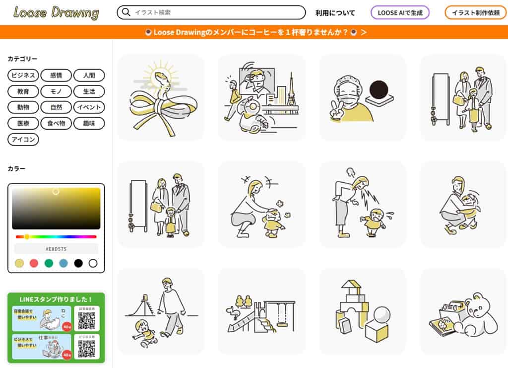 首頁免費素材圖像圖示 Loose Drawing 免費可商用的線條風插圖網站,支援主色變更 Loose Drawing 是一個免費插圖素材下載網站,提供商業、情緒、人物、教育、物品、生活、動物、大自然、活動、醫療、美食、興趣、圖示等多種類別的插圖資源。其獨特的線條風格以簡單的手繪線條搭配單一主色組成,既簡潔美觀,又富有個性,適用於多種設計需求。使用者可自由變更插圖的主色,並無須註冊即可下載 PNG 和 JPG 格式的圖檔。所有插圖可免費用於個人與商業專案,且無需標註來源。 🔔 不錯過任何精彩! 立即訂閱我們的 LINE 官方帳號 每次發佈新文章時,您將會第一時間收到本站文章連結通知,輕鬆掌握最新資訊! 使用 LINE 追蹤文章更新 §相關文章,還可以參閱:精心打造的等距美學:Isocons 免費圖示資源庫,CC BY 4.0 授權Map-It:日本地圖素材的免費寶庫,從全國到市町村一網打盡PICaboo! 日系可愛免費向量圖素材庫:設計師必收的創作寶庫GAHAG:日本免費圖庫新選擇,結合アハ體驗互動遊戲的創意素材平台illust STAMPO:日式風格的免費插圖素材網站 提供多類別插圖,PNG/JPG 格式下載,自由應用於個人與商業項目 1.Loose Drawing 網站無須註冊,進入後,除了可以以關鍵字搜尋插圖外,還可以利用頁面左側的分類篩選插圖。 2.顏色的部分可以透過顏色選擇器進行調整。 3.點選要下載的插圖,還可以為該插圖改顏色,下方可選圖檔格式下載( SVG 需聯絡該網站 )。 4.根據網站上的說明,網站發布的插圖版權仍歸 Loose Drawing 網站,但可供任何人免費使用,無論用於商業或非商業目的,無論個人或公司,也可以進行編輯和處理,不需要任何聯絡。 Loose Drawing網站網址:https://loosedrawing.com/