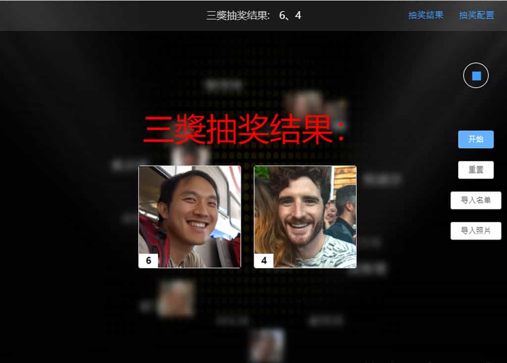 5.完成各項設置後,圓形球體將會顯示參加抽獎者的名字或照片。