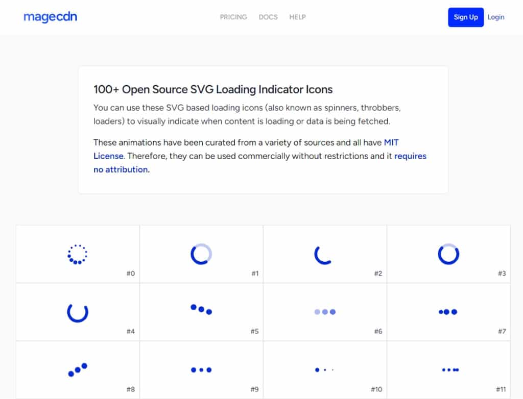 1.進入 MageCDN SVG Loaders 網站就可以看到授權說明及所有的圖示效果。