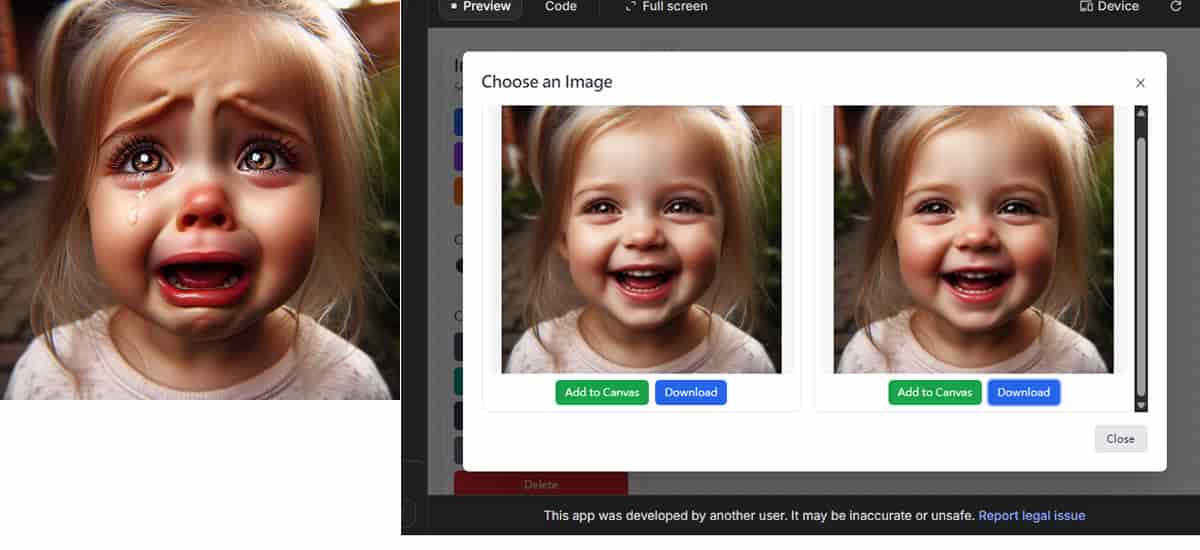 這邊用 Nano Banana Infinite Canvas 實際演練「讓小女孩笑起來」,效果真的很棒