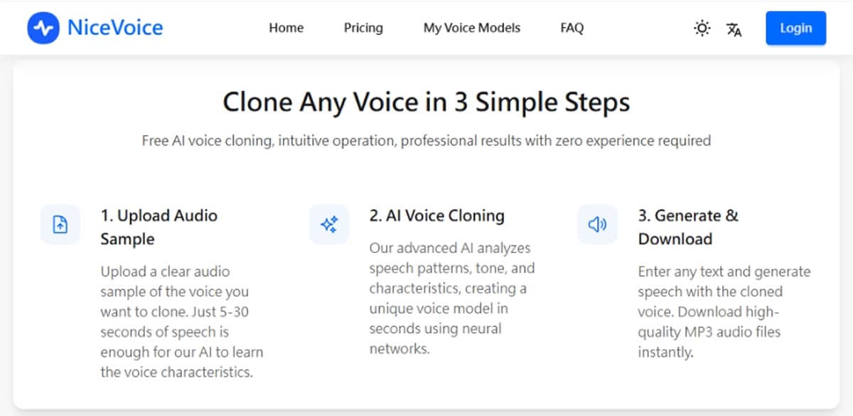 NiceVoice 是一款免費的線上 AI 語音克隆工具,不需要下載任何軟體,也不用註冊會員,打開瀏覽器就能用。它運用了最新的神經網路技術,號稱能達到 99% 的相似度,讓克隆出來的聲音幾乎跟真人沒兩樣。整個過程就像電影情節一樣,只要花 30 秒錄個音,AI 就能學會模仿你的聲音,然後用你的聲音唸出任何文字?這聽起來像科幻電影的情節,現在真的可以免費實現了!
