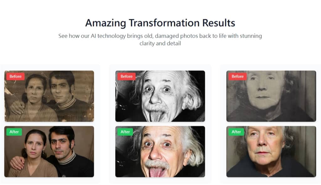 除了基本的修復功能外,Restore Old Photos 還提供了自動上色功能 (Auto Colorization),能將黑白照片轉換成自然色彩版本,讓歷史回憶更加生動。整個處理過程通常在數秒內完成,輸出品質達到印刷級水準,特別是在人臉細節重現方面表現優異。該服務支援 JPG、JPEG、PNG、GIF 和 WebP 等多種格式,最大檔案限制為 10MB,完全免費且無需註冊登入即可使用。