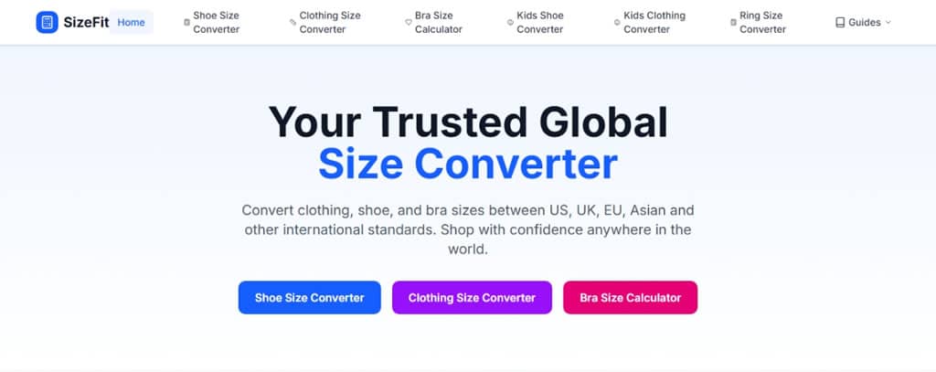無論是網購還是出國血拼,最怕的就是「尺寸不合」!買鞋、挑衣服、選內衣、幫孩子買童裝、甚至挑選戒指,都常常因為尺寸換算不同而搞得頭昏腦脹,不是穿不下,就是退貨麻煩又傷神。現在有了 SizeFit 全球尺寸轉換器,這些煩惱通通可以說掰掰!它支援美國(US)、英國(UK)、歐盟(EU)、日本(JP)、公分(CM)等各國常見尺寸,透過官方標準與真實用戶回饋數據,幫你精準換算,讓你不管在哪個網站、哪個國家購物,都能輕鬆挑對尺碼、安心下單不踩雷!