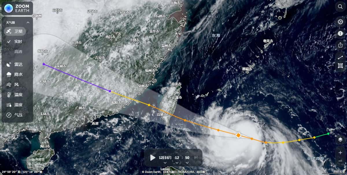 - 就能看到颱風的暴風圈和位置