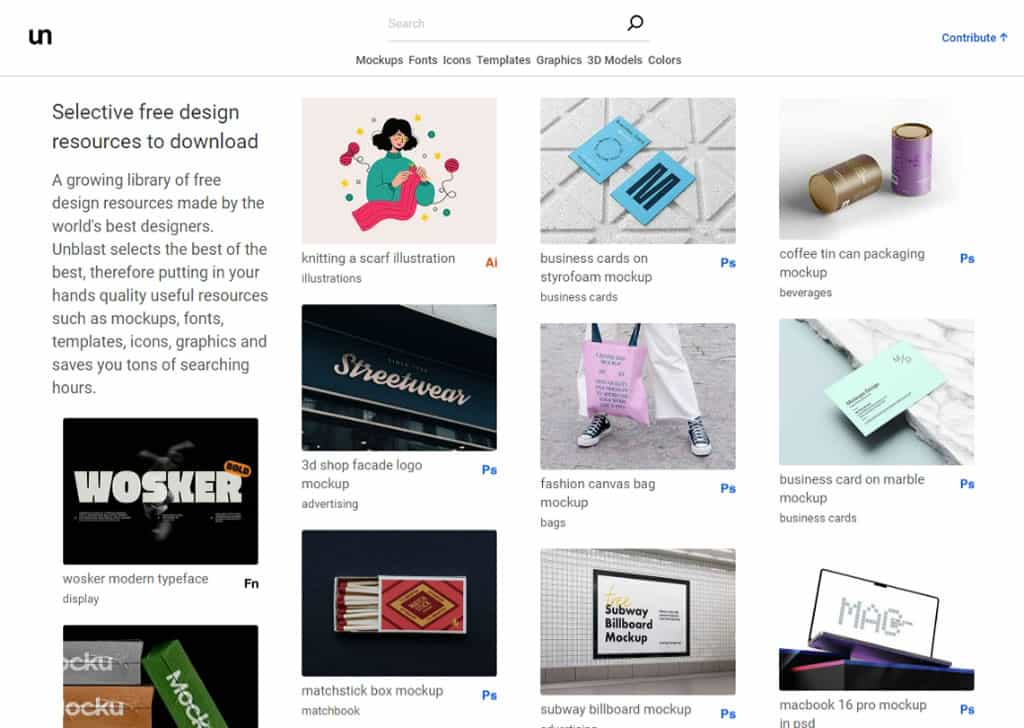 Unblast 雖僅以 Mockups、Fonts、Icons、Templates、Graphics、3D Models 及 Colors 來做分類,但其觸角涵蓋各類產品,且提供相應檔案下載,讓設計師直接使用,減少在設計資源上的搜尋時間,快速產出設計作品。