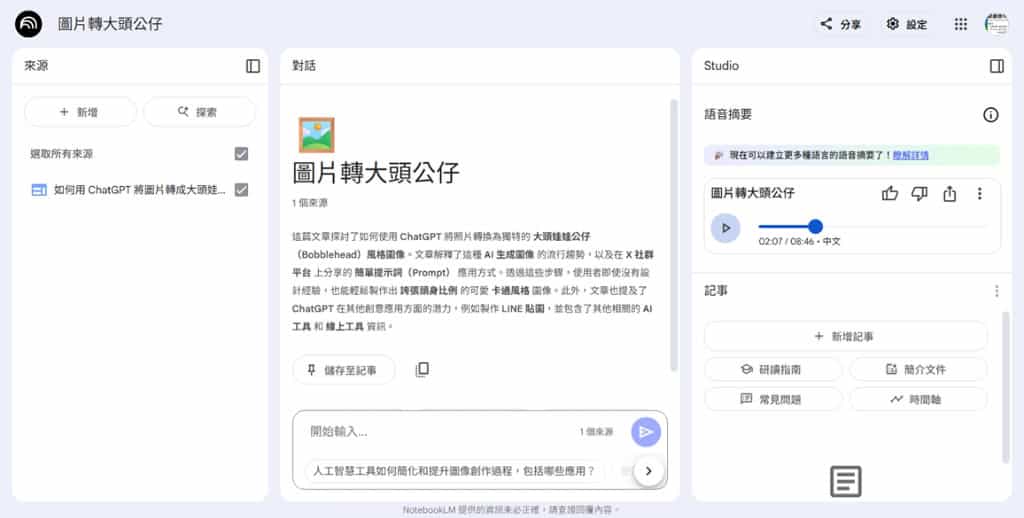 教你如何用 AI 筆記神器 NotebookLM 把網頁內容變身對話式播客語音