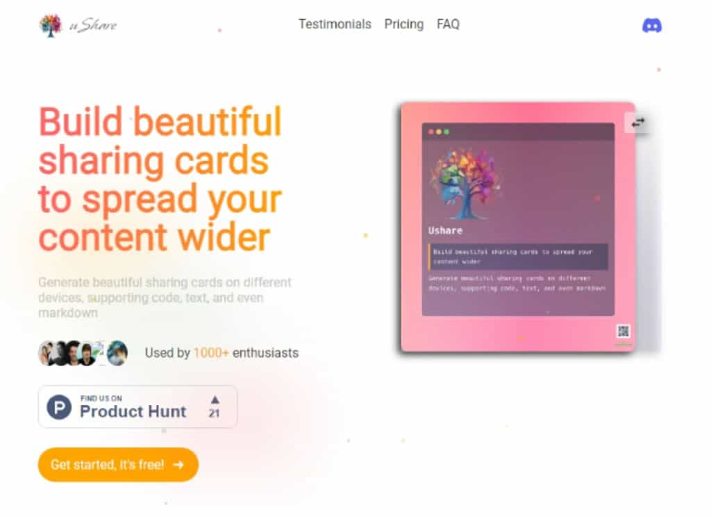 首頁線上工具影像繪圖 uShare 精美文字卡片製作工具,支持程式碼、文字或 Markdown 等內容 uShare 是一個專為裝飾文字內容成獨特卡片而打造的免費線上工具。這個工具簡化了製作引人注目的文字卡片的過程,讓使用者無需複雜的設計技巧,僅需透過簡單的操作就能完成一張具有吸引力的文字卡片。透過 uShare,使用者只需輸入欲展示的文字內容,並調整相應的參數,即可輕鬆完成心目中的文字卡片。uShare不僅支援文字和程式碼高亮風格,還提供多種自定義選項,讓使用者完全掌握卡片的外觀。例如,使用者可以根據喜好選擇卡片背景的色彩,或者上傳自己喜愛的圖片作為背景。此外,uShare 還允許在卡片上加入浮水印、QR Code等元素,讓每一張文字卡片都能展現獨特的風格。 🔔 不錯過任何精彩! 立即訂閱我們的 LINE 官方帳號 每次發佈新文章時,您將會第一時間收到本站文章連結通知,輕鬆掌握最新資訊! 使用 LINE 追蹤文章更新 §相關文章,還可以參閱:跟著做就會!教你用 ChatGPT 製作具職業形象的漫畫風頭像Put!所見即所得的 AI 提示詞圖庫:讓你看著範例圖,複製就能做出同級作品Google 親自示範:Nano Banana AI 圖像編輯工具的 13 個熱門玩法照片角度不滿意?AI 幫你調整!3D Camera Control 讓舊照片任意變換視角Meta AI 免費帳戶也能用 Midjourney!無限生成 AI 圖片,台灣可用 uShare 製作文字卡片方式: 1.進入 uShare 網站首頁,可以先看其使用說明後,再點擊「Get started」 按鈕進入製作工具。 2.以程式碼為例,除了支援高亮風格呈現外,還可以透過右側的工具來編輯外框。 調整文字框的位置。 3.加入 logo、浮水印或二維條碼。 4.也支援以使用者上傳背景圖片。 5.最後,可以透過文字框上方的「Export」按鈕,將成品輸出成 PNG 圖檔。 對內容創作者、開發者還是一般使用者而言,uShare 都提供了一個輕鬆實現創意的途徑,將文字內容轉化為引人注目的卡片。而且,uShare 無需註冊,完全免費,成為製作文字卡片的理想選擇。 uShare網站網址:https://share.aitimi.cn/