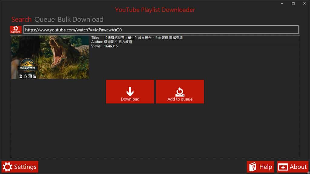3.完成安裝,開啟 YouTubePlaylistDownloader 後,就可以看到如下的介面。